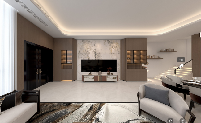本案為 160㎡ 躍式居所 業主需求: 男主人自己做生意,女主人居家照顧兩個小孩,兩個小孩都是女孩,平時在家時間會比較多; 女主人對儲物的要求比較高,再加上兩個都是女孩,需要足夠的空間放置衣物; 所以在設計上不止考慮夫婦倆的喜好所在, 更需兼顧小孩對于興趣、活動空間的使用感受。 2、風格定位-現代輕奢 溫潤的木色搭配香檳色的線條使空間盡顯質感和奢華, 再加上精致的擺件,從入戶起便可感受空間的藝術氣息。 窗簾、燈具等選擇上也無不透露出設計師對空間的細節之美。