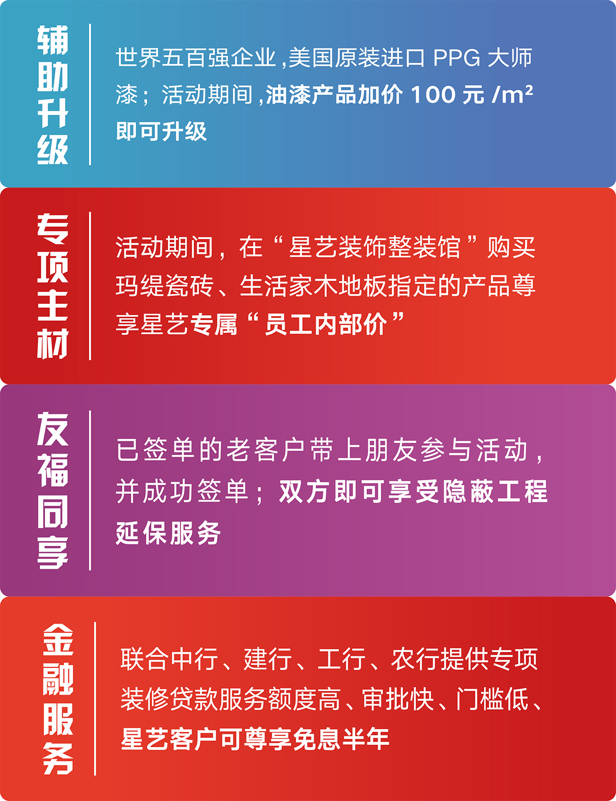 • 品牌主材折扣,星藝裝飾專屬員工內部價