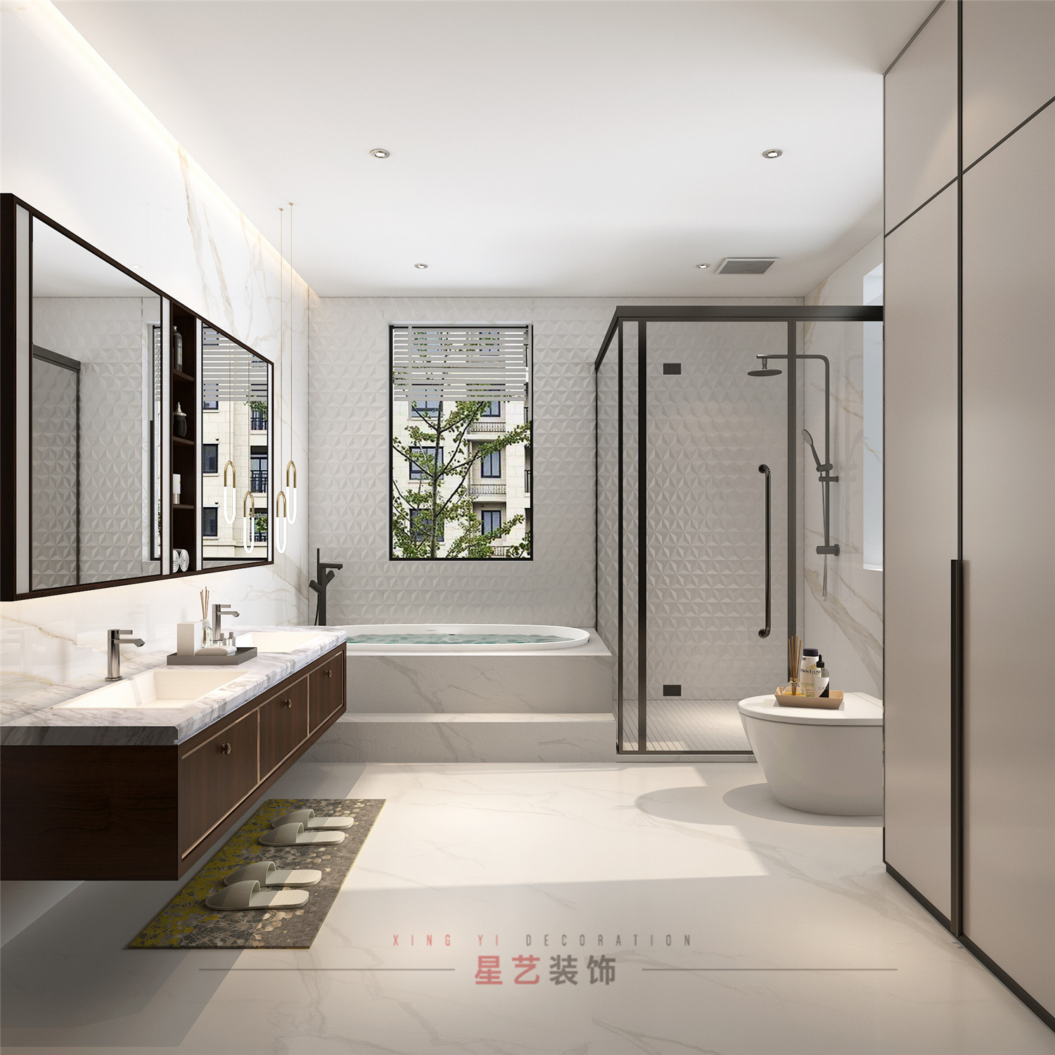 主衛用統一的白色色調擴大了視覺空間,看起來更加干凈整潔,搭配黑色描邊增加時尚氣息,純碎而含蓄。