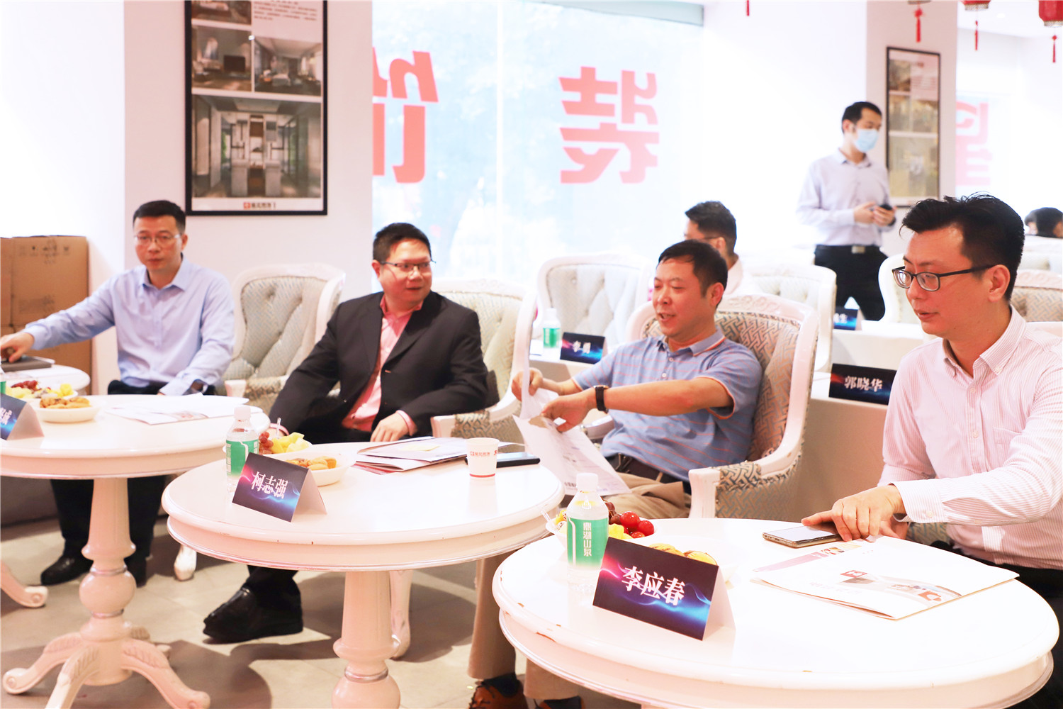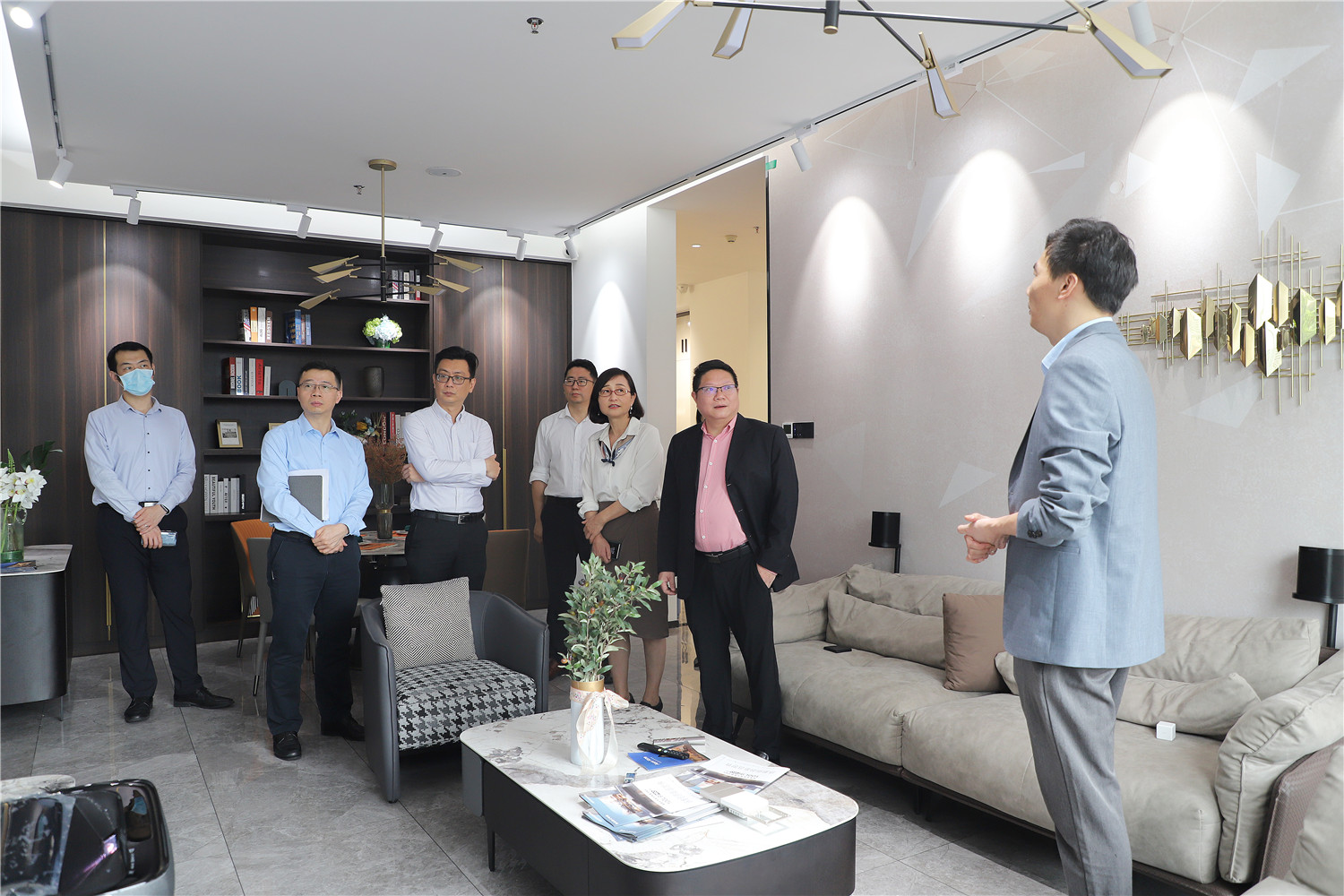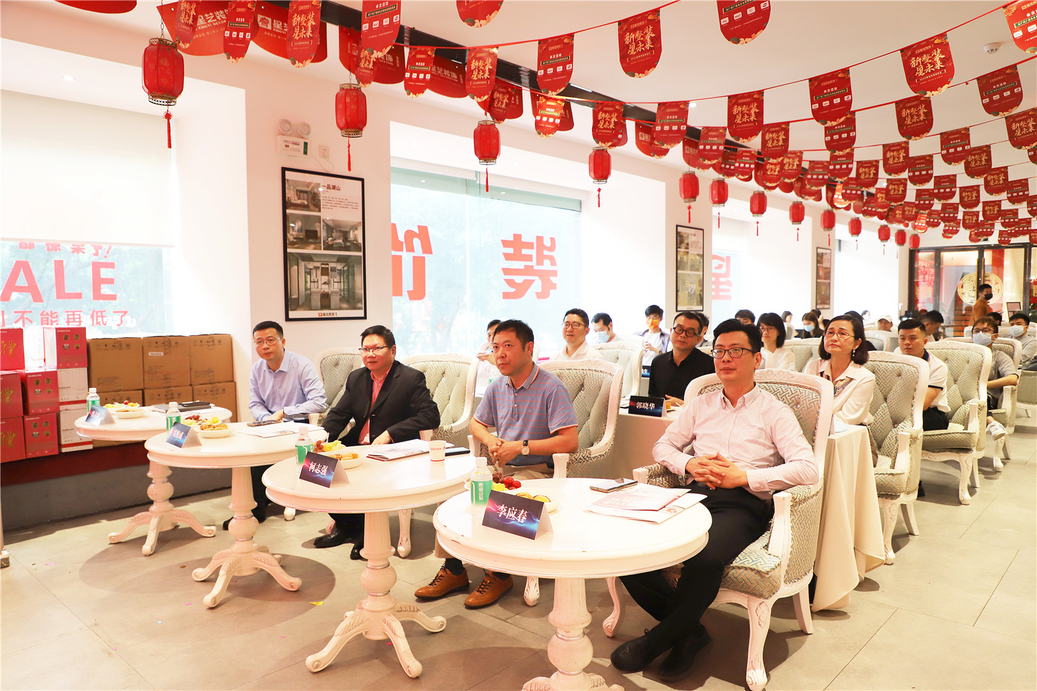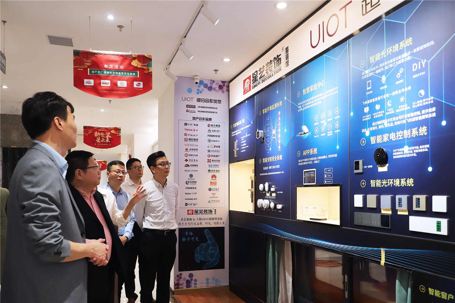 星藝裝飾廣州分公司總經理柯志強,副總經理劉亦萍、總設計師郭曉華 、工程總監汪維亮、星藝整裝館總經理黃桃生、設計總監江文鋒,整裝工程部經理石峰;