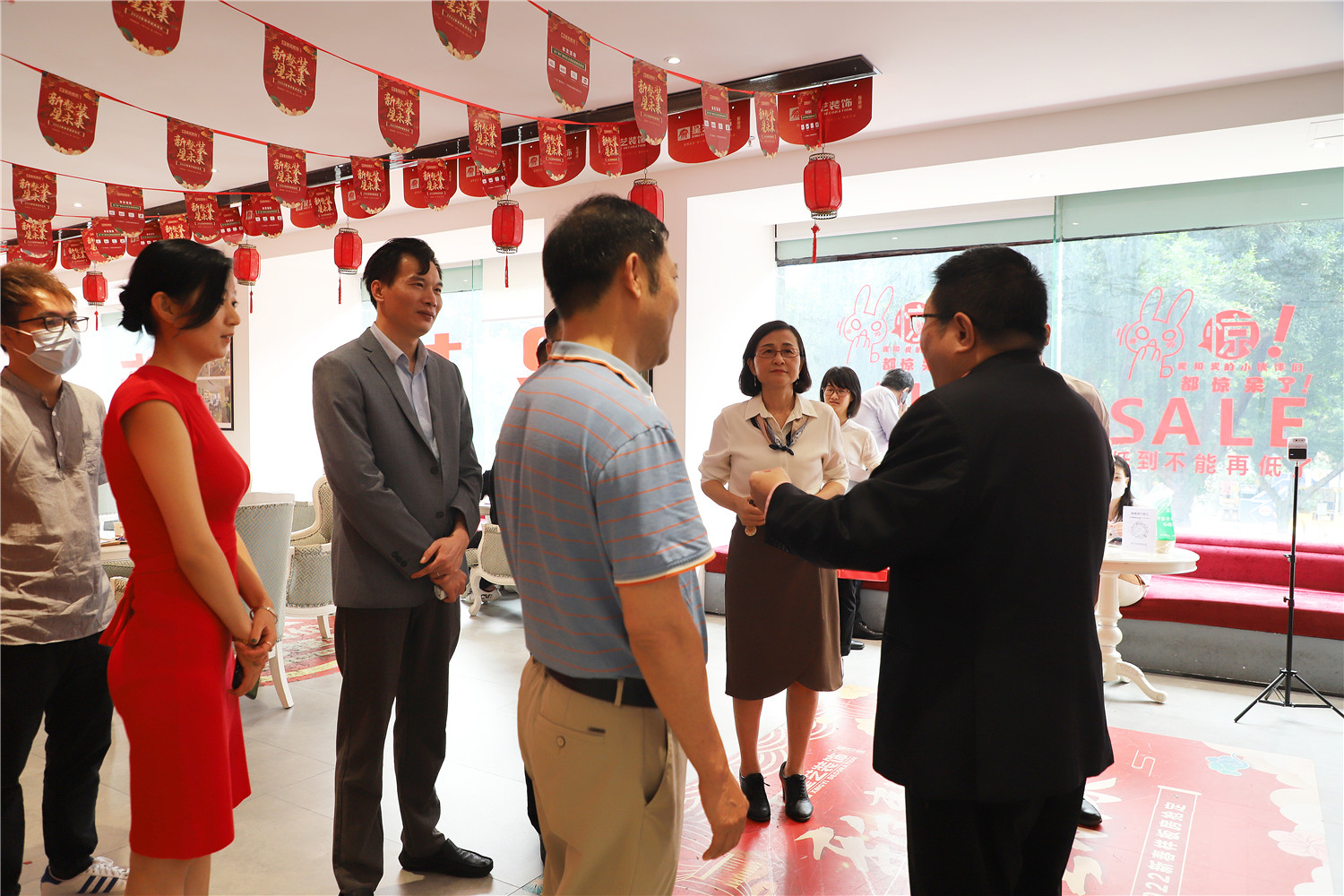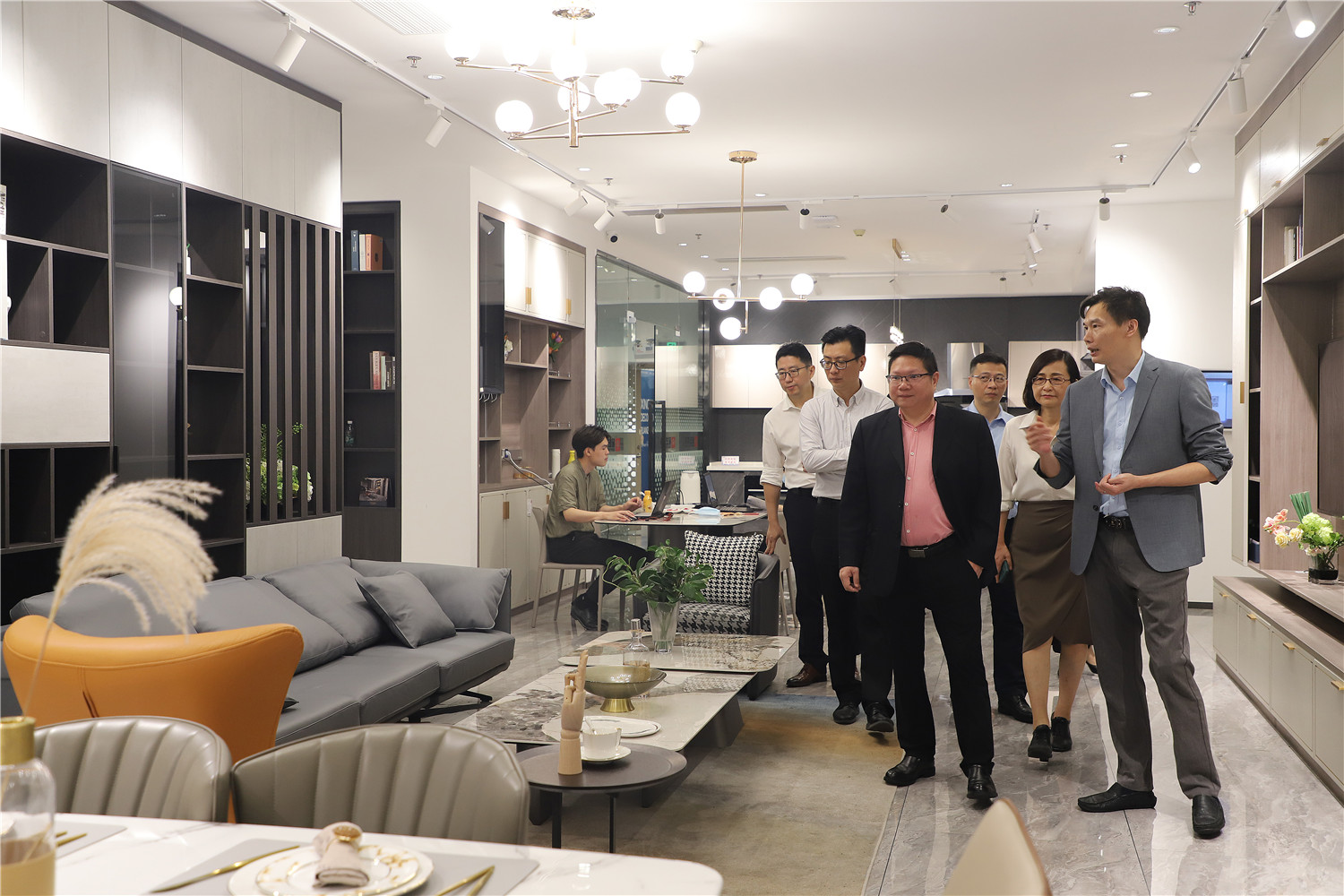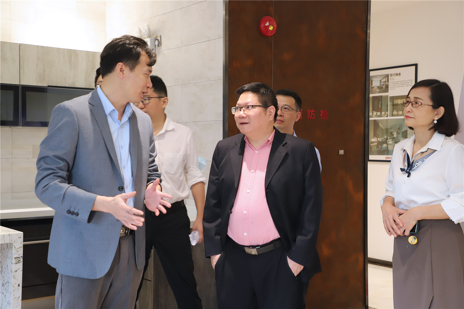 簽約儀式開始前,星藝整裝館總經理黃桃生帶領中國電信公司領導一行人步入展館進行參觀活動,并為來訪人員進行展廳的詳細介紹。