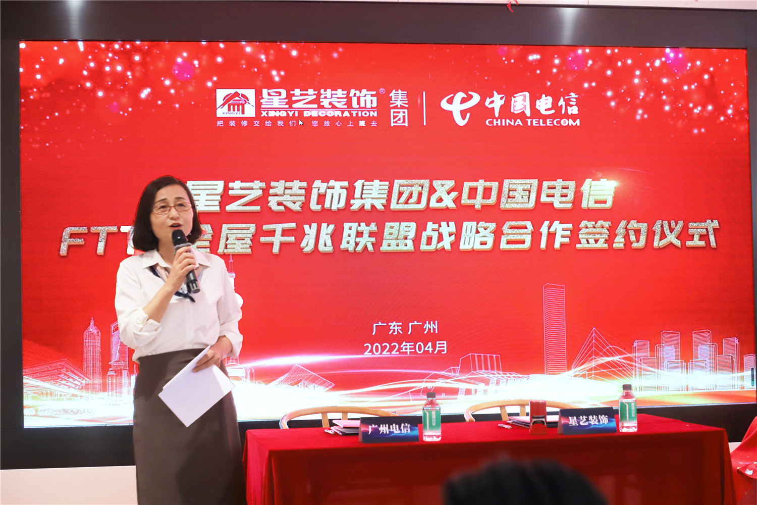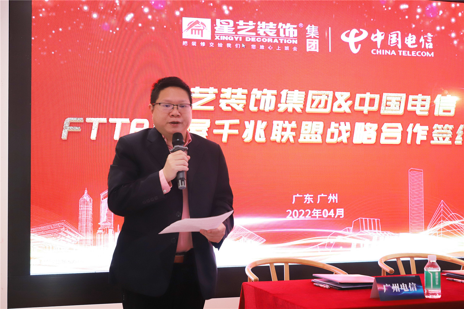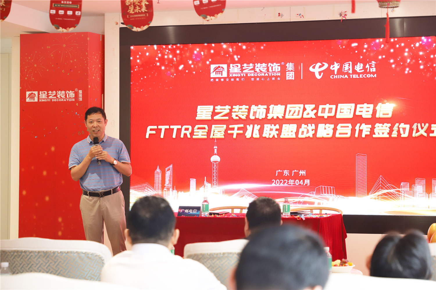 2022年4月24日,星藝裝飾廣州分公司與中國電信廣州分公司FTTR全屋千兆項目戰略合作簽約儀式在廣州市星藝整裝體驗館圓滿舉行,在立足客戶需求為出發點,合作共贏的基礎上,正式達成FTTR全屋千兆項目戰略合作伙伴關系,實現強強聯合、優勢互補。