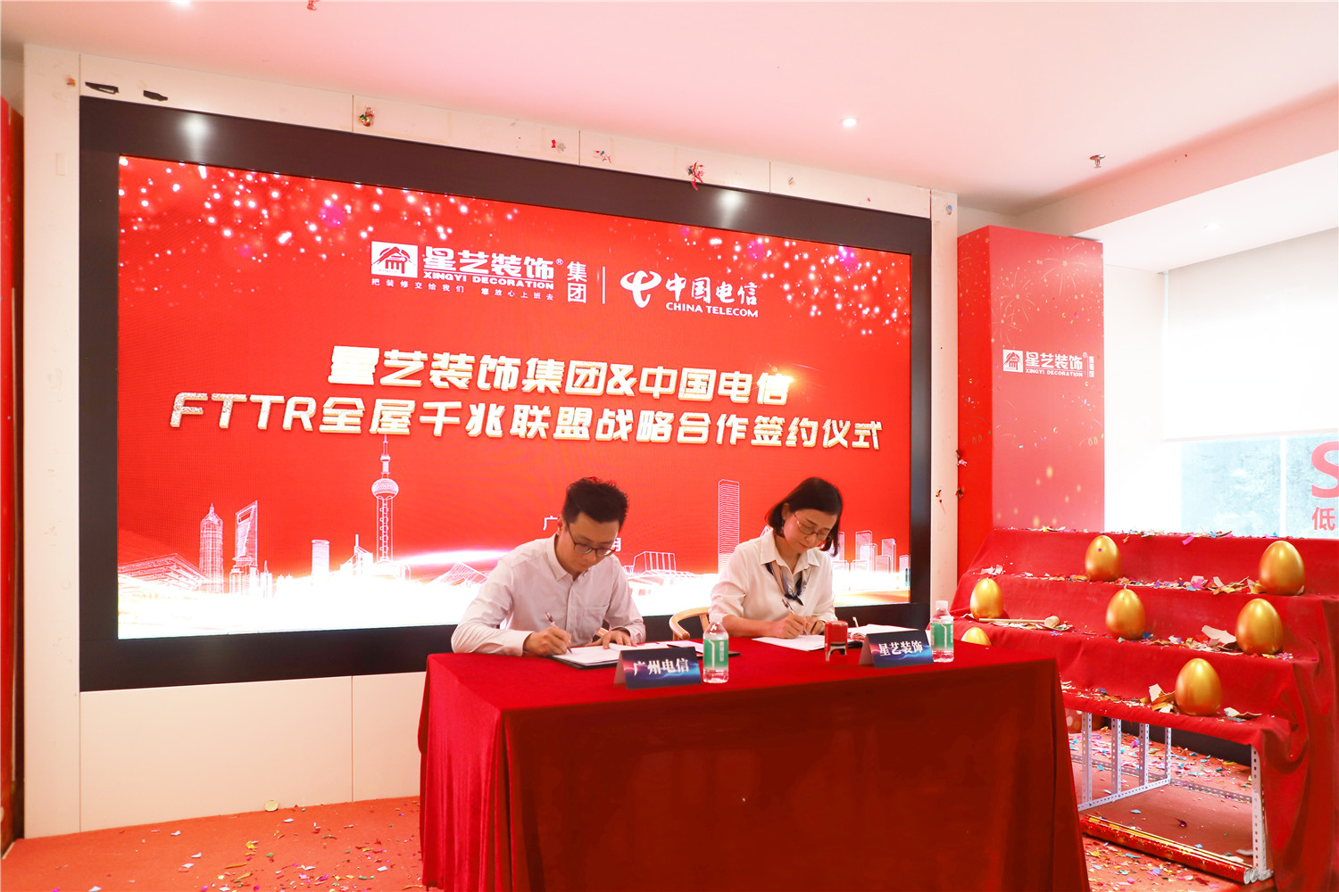 定了!星藝裝飾與中國電信FTTR全屋千兆項目聯盟戰略合作簽約儀式圓滿成功!