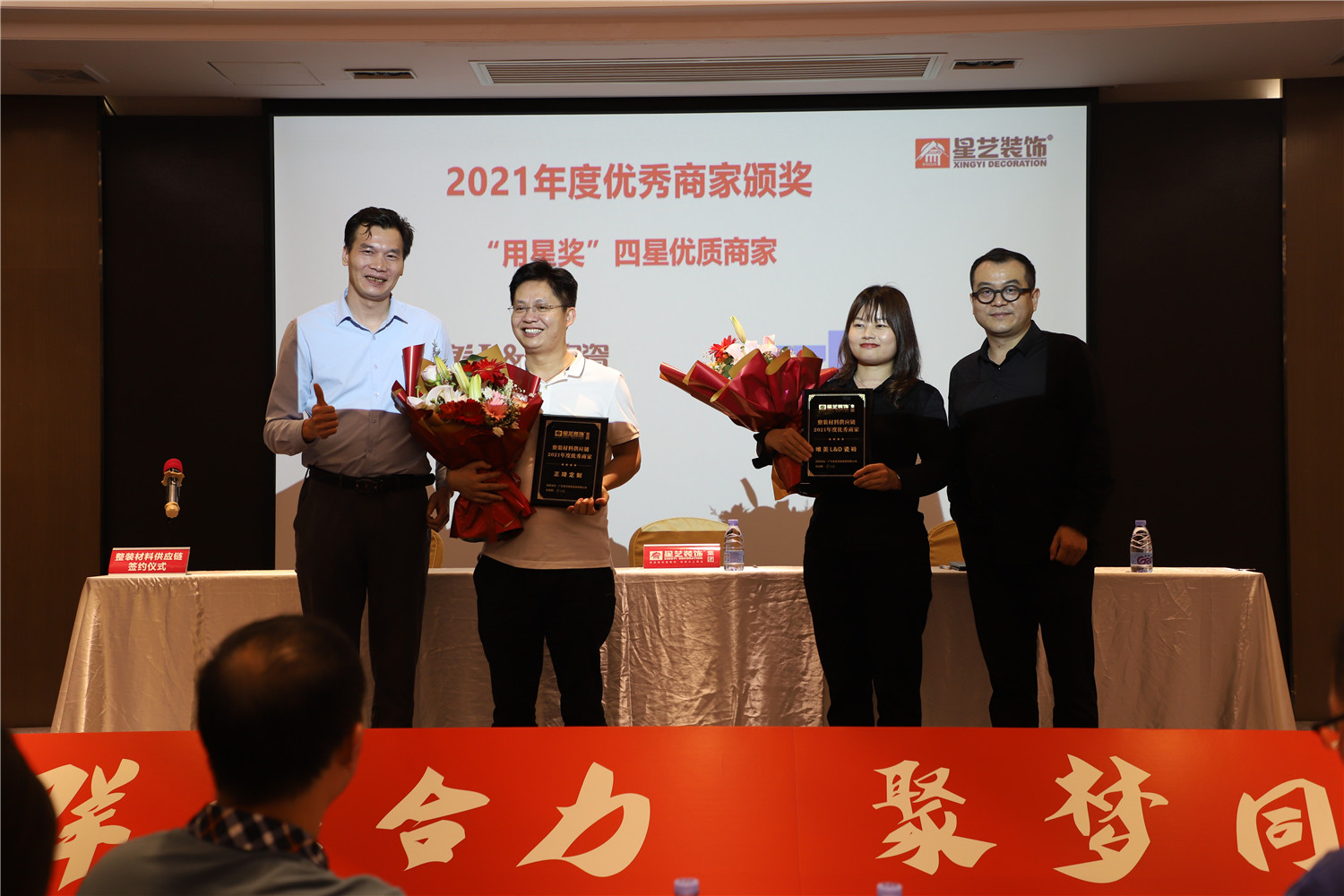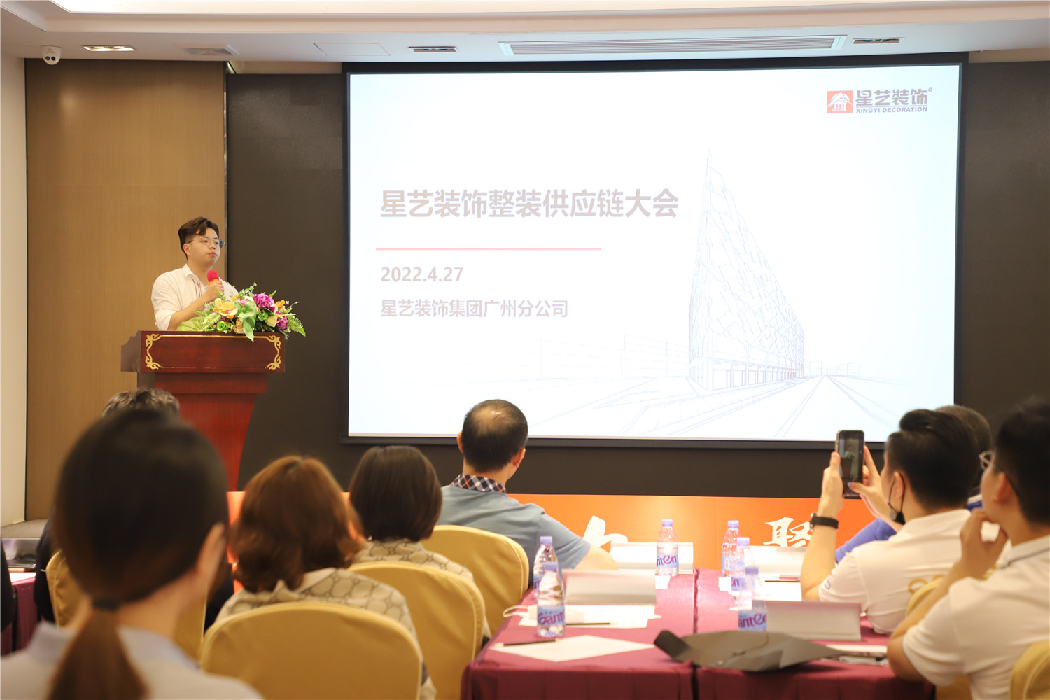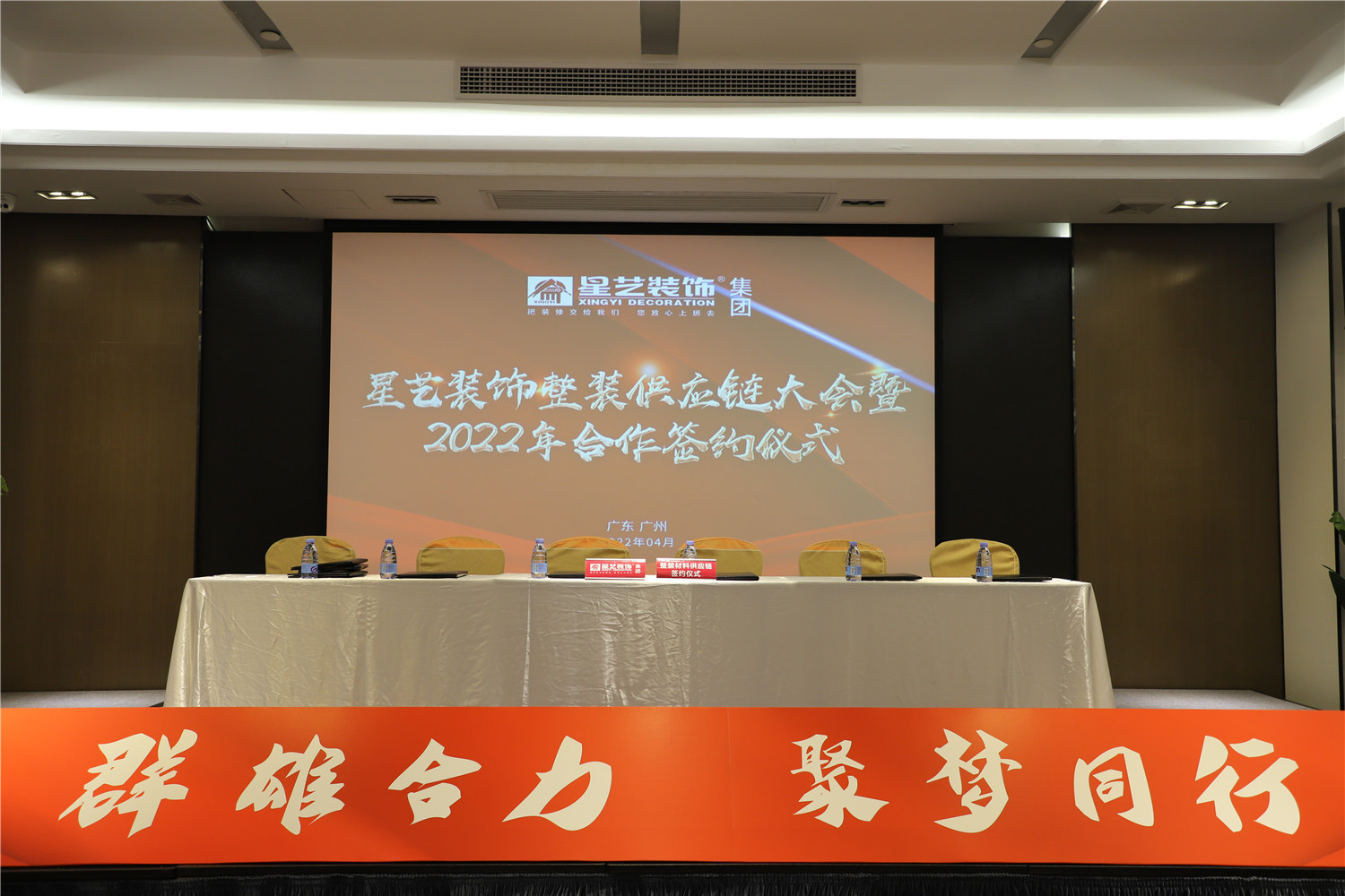 2022年4月27日,星藝裝飾集團廣州分公司隆重舉行星藝裝飾整裝供應鏈大會?!叭盒酆狭Α艟蹓敉小保撬囇b飾始終堅信合作共贏是企業生存、發展的最高智慧,如今的累累碩果更離不開每位合作供應商的高度信賴與鼎力支持。