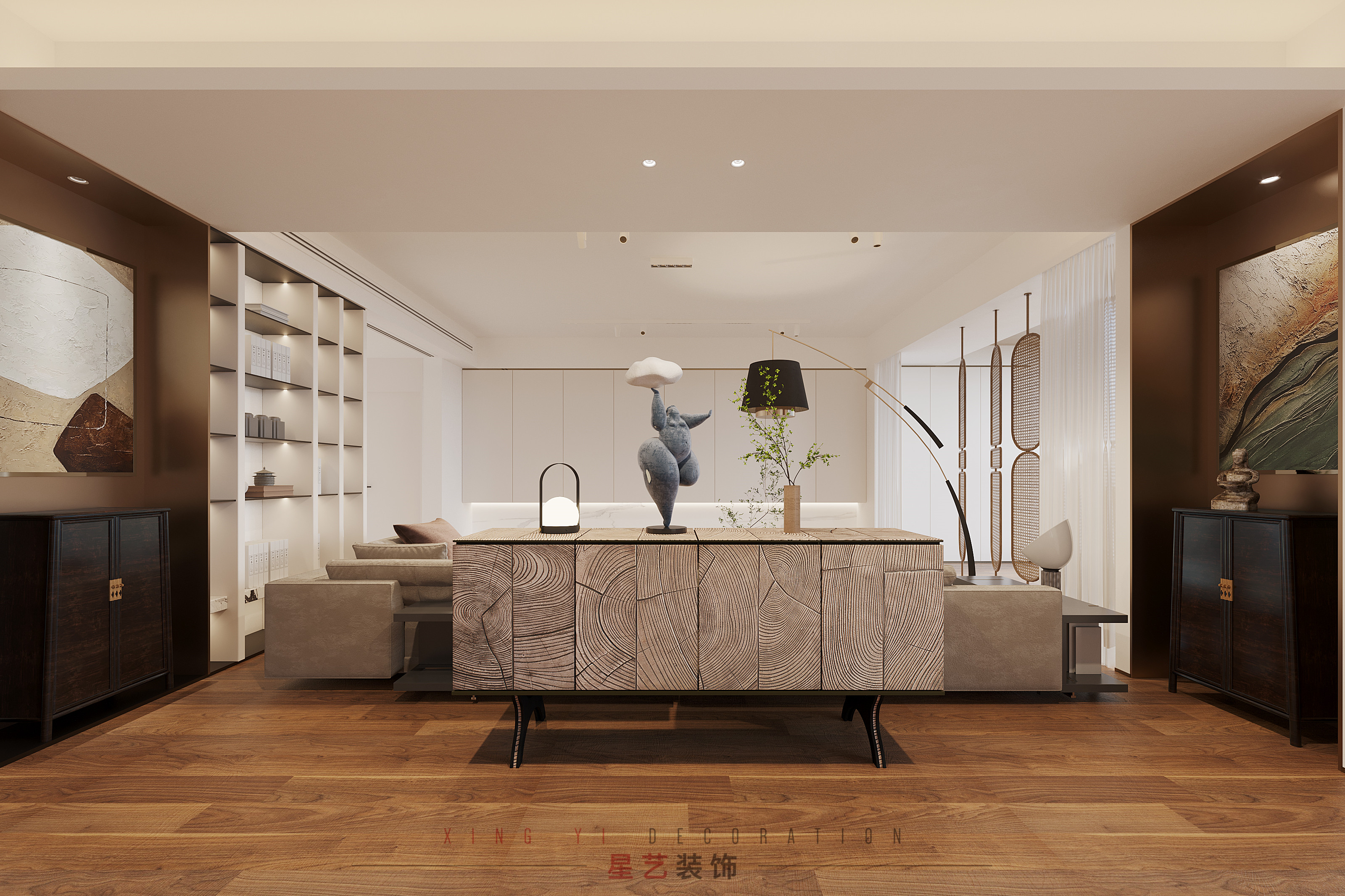 現代簡約+藝術文化,簡潔明快的設計風格為主調,加入藝術文韻,生活的精致感和個性化得以彰顯,這是本期案例的感性經驗。